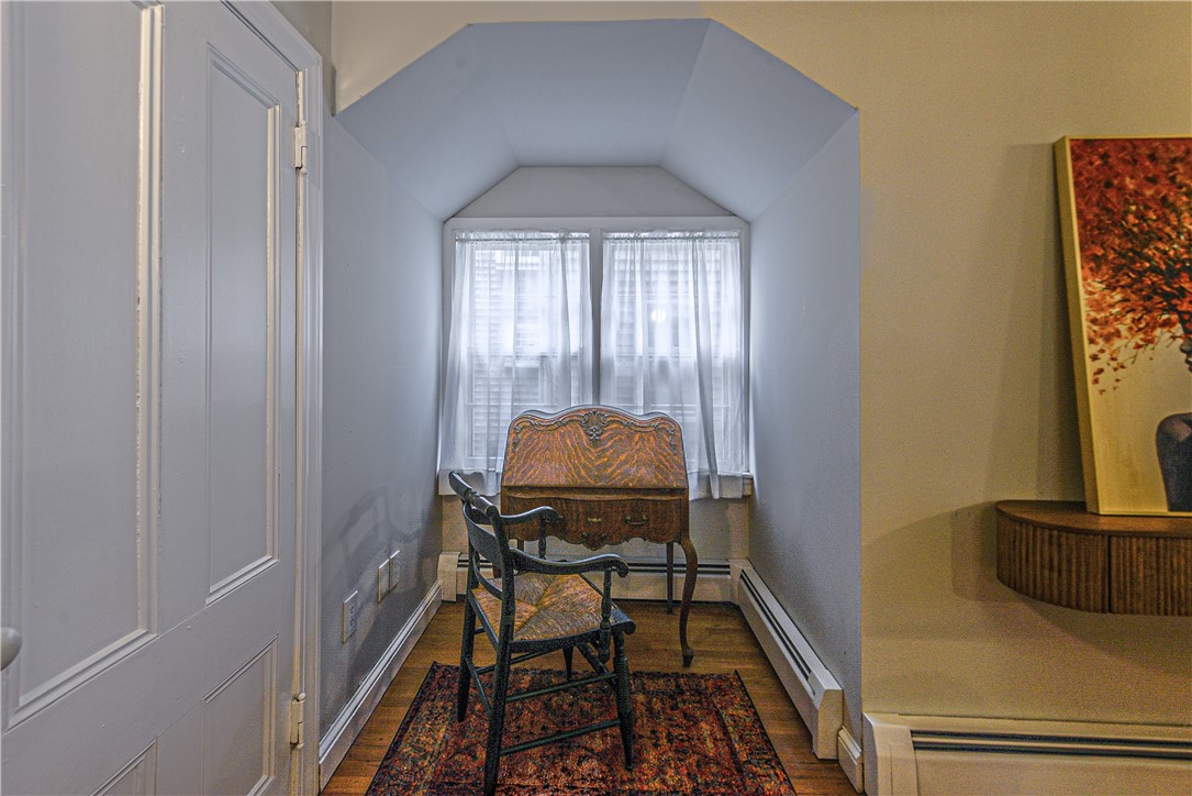 Available now through May. Elegant first floor, 2 bedroom furnished apartment in Historic Hill. Sky-high ceilings, architectural details including crown molding, coffered ceiling in living room with a decorative fireplace as well as a built-in window seat at the bay window in one bedroom. The modern kitchen offers plenty of cabinet space and features new Cafe appliances and a tin-tile feature wall behind the stove. The full bath has a large rain shower and tub. Plenty of closets offer ample storage and sun floods in through oversized windows making it a bright and airy space. Located across from a lovely park and within easy walking distance to Bellevue Avenue, Touro Street and Washington Square. Available for shorter term rentals (30 days or more), rental fee is all inclusive, security deposit will be based on lease term. Also available during the summer and fall at the high season rate. See MLS #1405193.